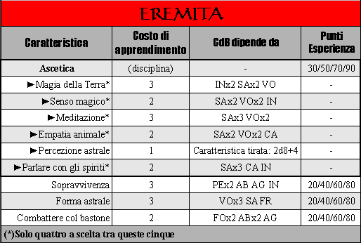 Molti ritengono che i grandi centri urbani siano luoghi illuminati di conoscenza, rispetto alla rozza ignoranza delle campagne. Ma è proprio nelle campagne e nelle lande ancor meno ospitali e desolate come paludi e alture montane che gli eremiti trovano asilo nel perseguire il raggiungimento di conoscenze che richiedono spesso un notevole distacco da tutto ciò che è contaminato da altri della loro stessa razza. Questa pratica non fa però di loro necessariamente dei solitari, in quanto l'isolamento non sempre è sufficiente a raggiungere il grado di illuminazione desiderato e questo porta spesso gli eremiti ad errare alla ricerca di luoghi più mistici o in cui aleggiano forze antiche od incorporee.